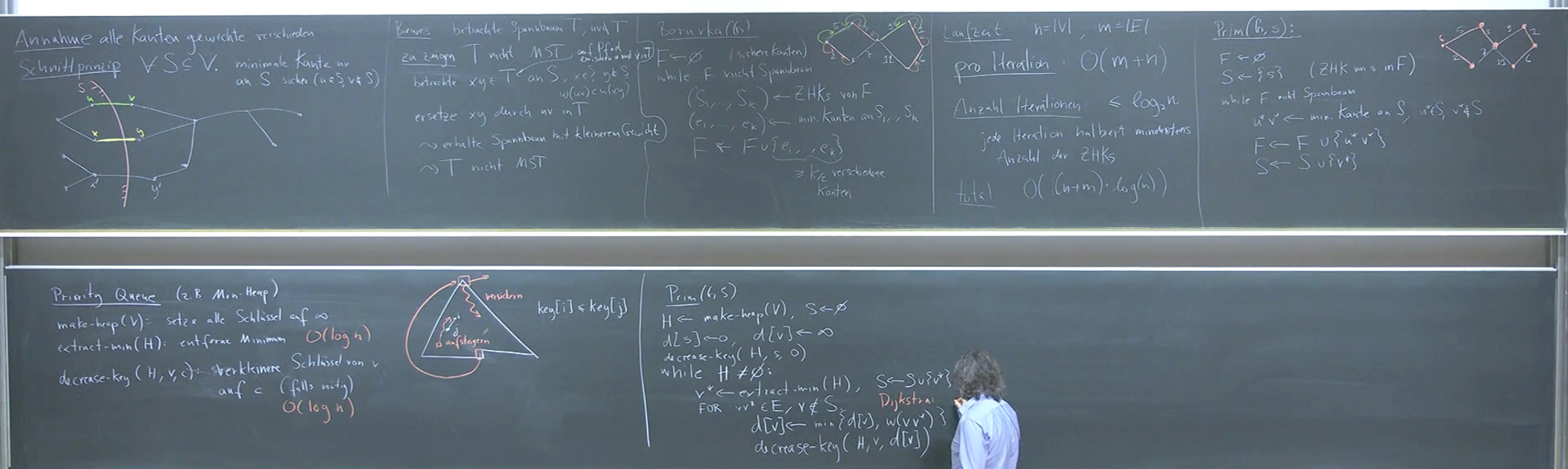 - Minimum dieser Kanten auswählen und Knoten als besucht markieren/zum MST hinzufügen
