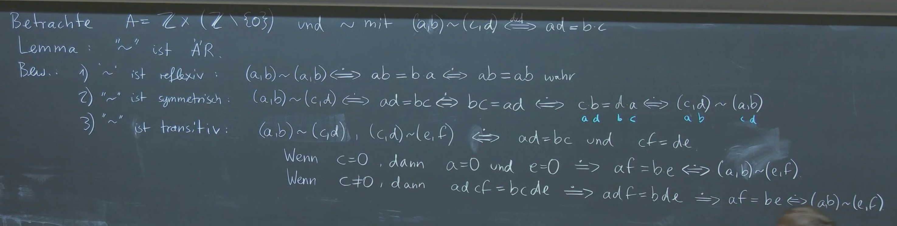 Definittion: Die Menge aller Äquivalenzklassen (Quotientenmenge) einer Äquivalenzrelation ist