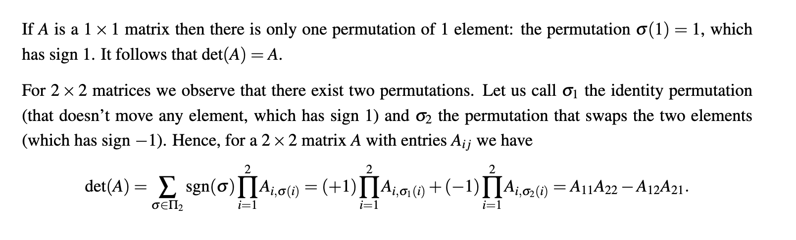- Sonst (Def.7.2.3): : Menge aller Permutationen (“alle Möglichkeiten, die Zahlen bis durcheinanderzuwürfeln”) : pro Zeile wählen wir einen Eintrag, bestimmt von .