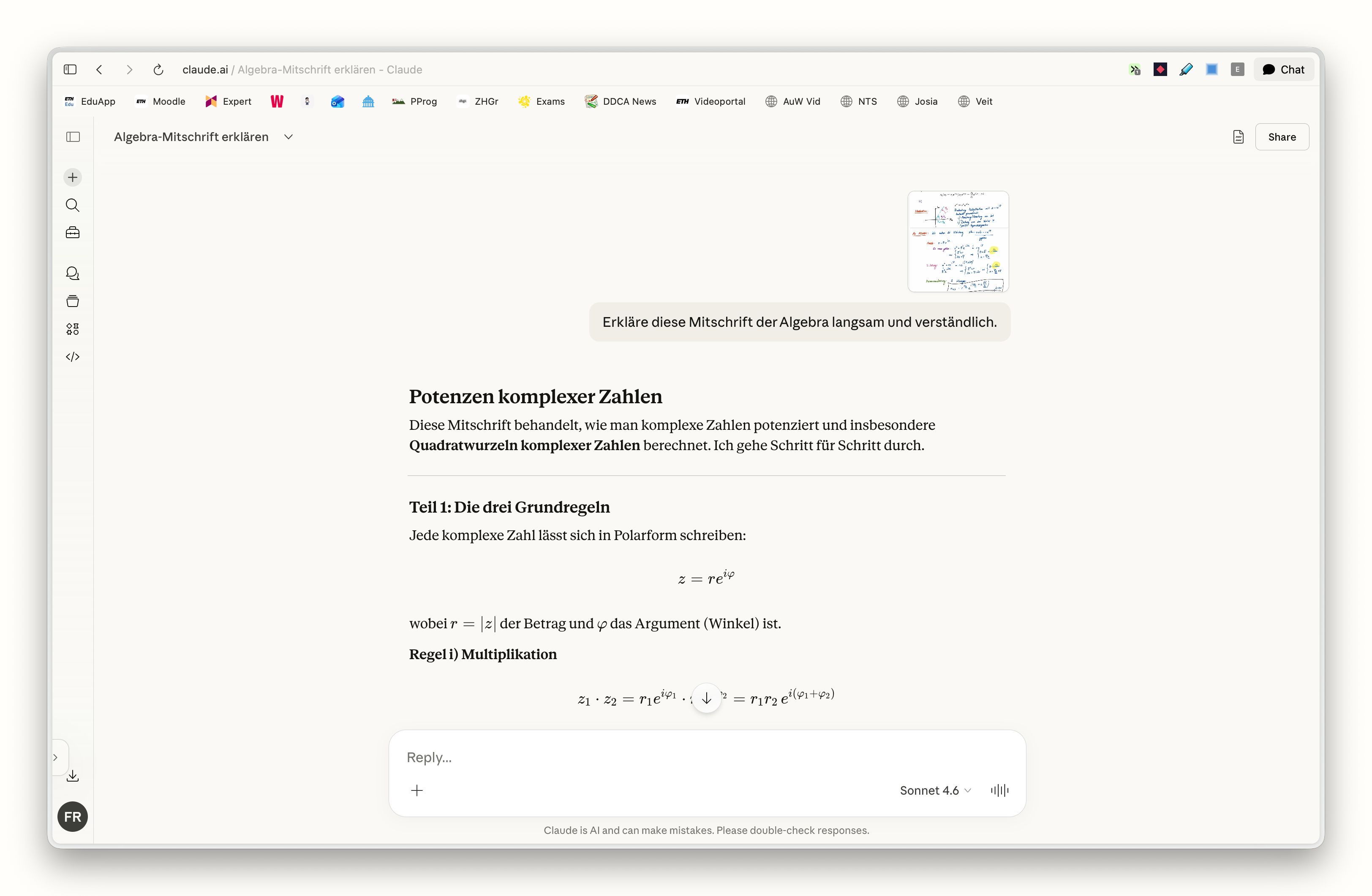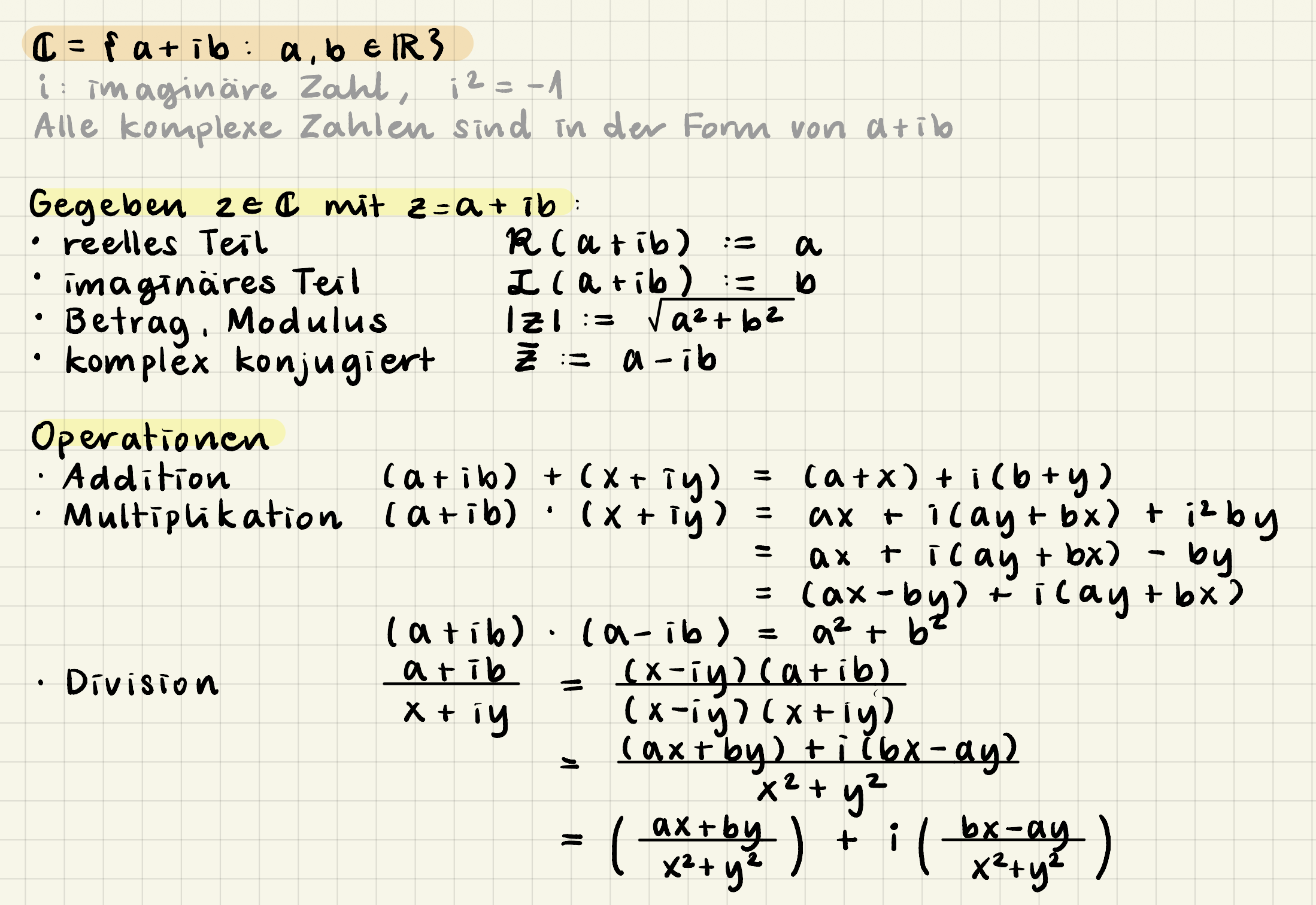 Komplexe Zahlen können wir in der Ebene darstellen, indem wir auf der horizontalen Achse den Realteil und auf der vertikalen Achse den Imaginärteil abtragen.